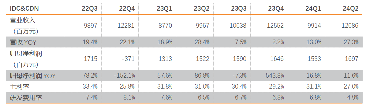 表2:IDC&CDN子行業(yè)財(cái)務(wù)數(shù)據(jù)匯總