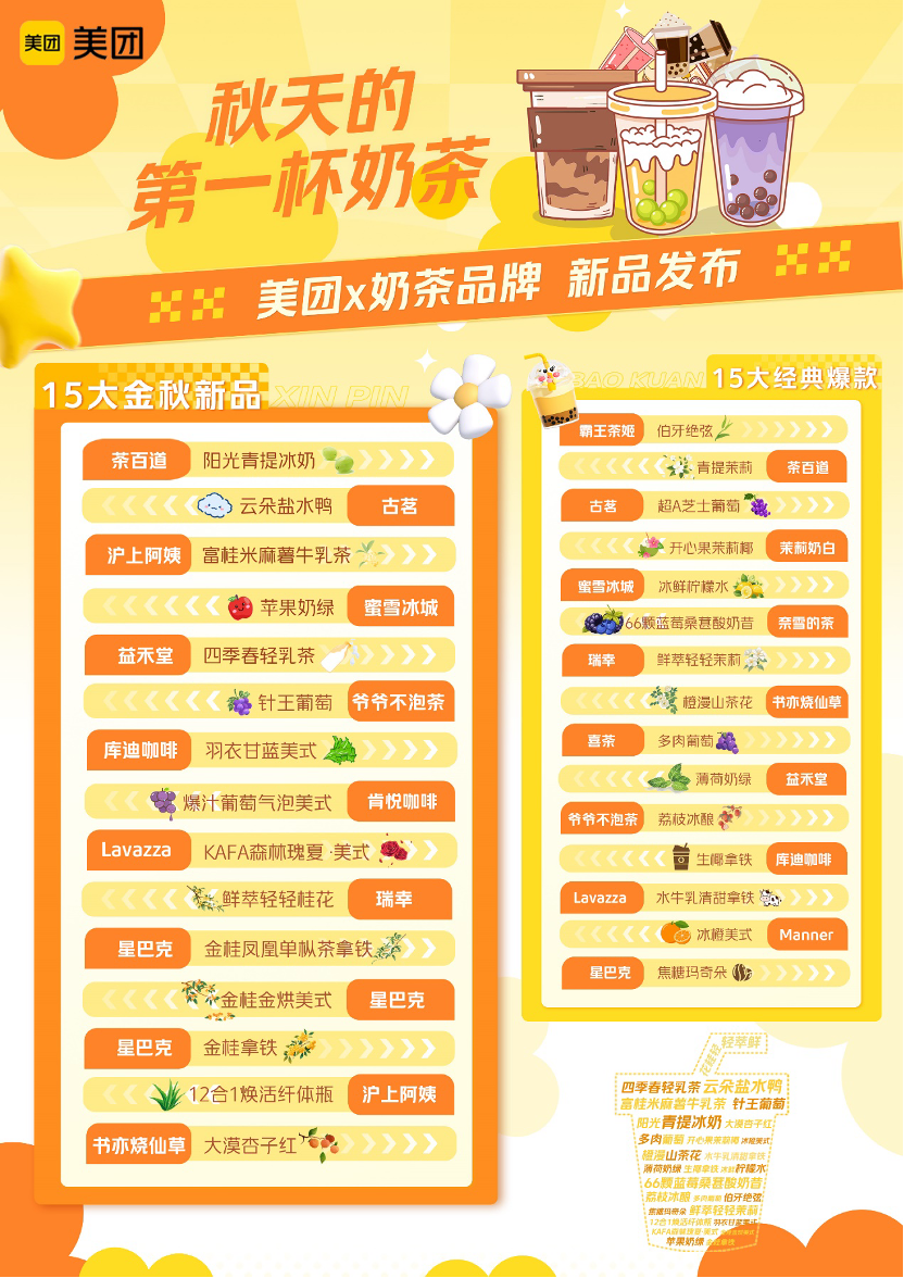 從網(wǎng)絡(luò)熱梗到每年“固定節(jié)目”,受年輕人歡迎的“秋天第一杯奶茶”,已經(jīng)連續(xù)5年帶動(dòng)飲品消費(fèi)潛力釋放,而各茶飲品牌在“秋天第一杯奶茶”期間,通過美團(tuán)進(jìn)行新品首發(fā),已成為行業(yè)重要趨勢(shì)。