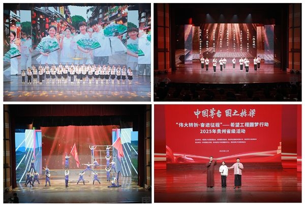 活動上,開場節(jié)目《橋見貴州,橋見棟梁》、長征主題舞臺劇《赤水騎兵》、“希望工程·陪伴行動”項目點學(xué)生與指導(dǎo)老師合作曲藝表演《妙聯(lián)趣對說希望》、茅臺受助學(xué)子《棟梁賦》朗誦等輪番演繹,既展現(xiàn)了遵義紅色精神的光輝典范,又展現(xiàn)了茅臺始終心懷大愛,關(guān)愛青少年成長的高尚情懷?;顒釉谝磺赡鄣耐暫铣队忠娦呛印分袌A滿落下帷幕。