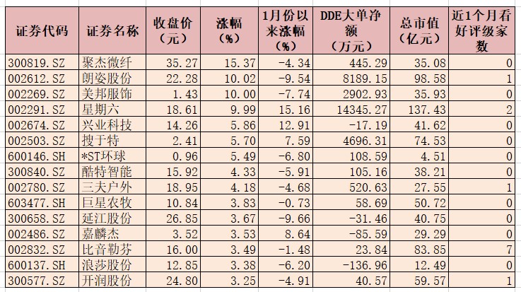 表:1月19日紡織服裝行業(yè)漲幅超3%個(gè)股一覽