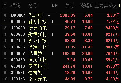 東方財富光刻膠概念大幅上漲,截至周三收盤,漲幅達(dá)5.84%。板塊44只成份股全線上漲,其中,2只個股收20CM漲停,17只個股漲超5%