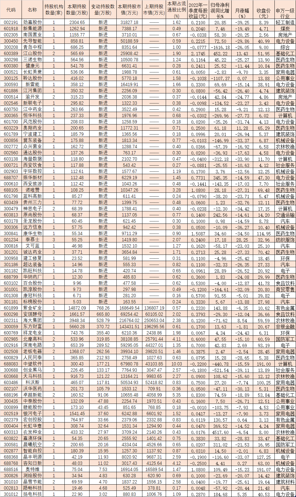 表:今年一季度獲QFII新進(jìn)持的個(gè)股
