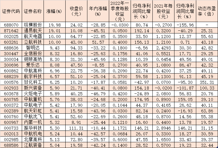 5月份的首個(gè)交易日,國防軍工板塊集體走強(qiáng),整體上漲3.23%,跑贏上證指數(shù)(漲幅0.68%)。其中,縱橫股份、航天電器、立航科技等3只個(gè)股漲停,通易航天大漲19.01%,智明達(dá)、全信股份、鋼研高納、愛樂達(dá)等4只個(gè)股漲幅也均逾8%。