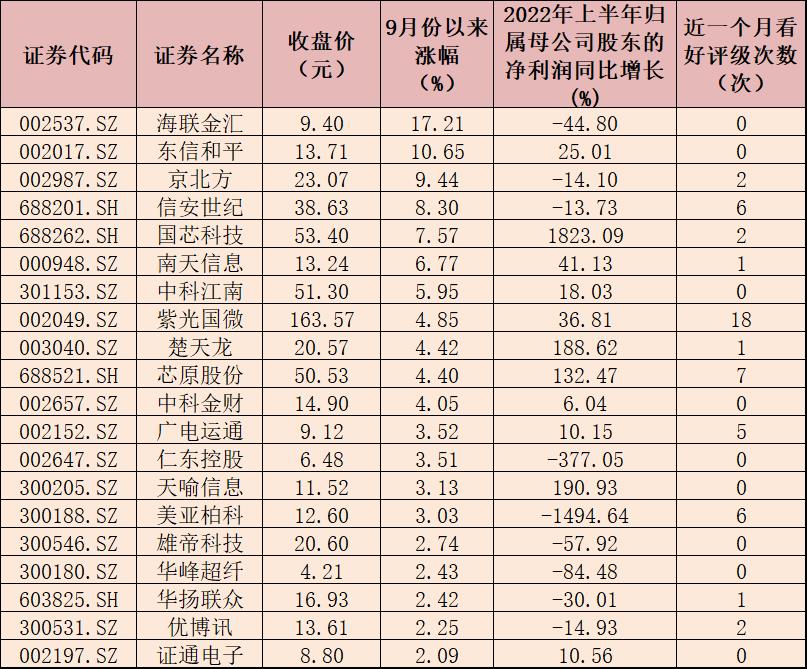 表:9月份以來(lái)漲幅排名前20的數(shù)字貨幣概念股一覽