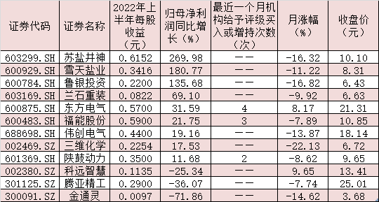 在政策大力支持下,今年上半年空氣儲能板塊上市公司業(yè)績表現(xiàn)較好。同花順數(shù)據(jù)顯示,上述12家空氣儲能板塊上市公司中,9家公司今年上半年實現(xiàn)歸母凈利潤同比增長,占比超七成。其中,蘇鹽井神、雪天鹽業(yè)、魯銀投資等3家公司報告期內(nèi)實現(xiàn)歸母凈利潤同比翻番。