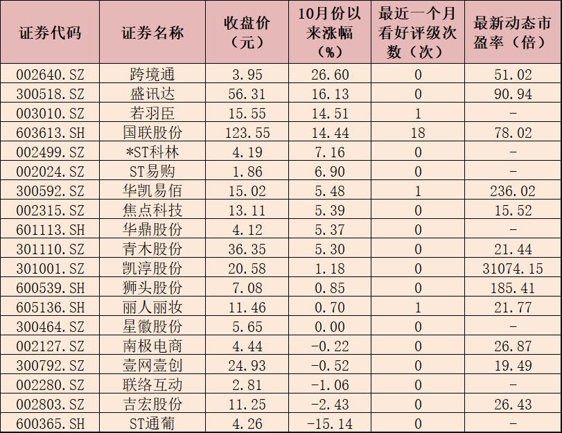 表:10月份以來(lái)互聯(lián)網(wǎng)電商股市場(chǎng)表現(xiàn)一覽