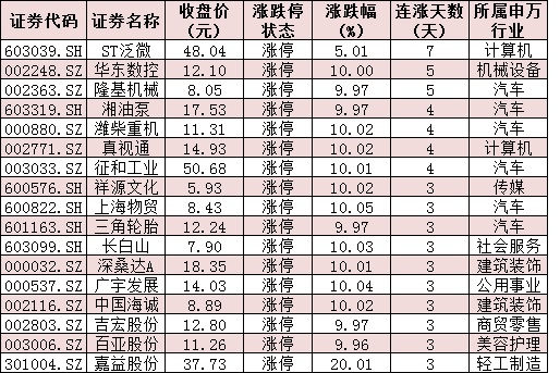 表:連續(xù)上漲3日且今日收盤(pán)漲停個(gè)股情況: