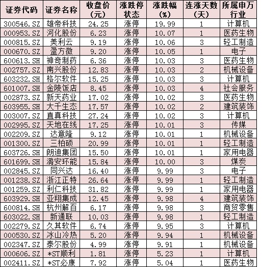 漲停板方面,10月28日,有27只個(gè)股漲停,87只個(gè)股跌停。從漲停個(gè)股看,有12只漲停股,股價(jià)已連續(xù)上漲3個(gè)交易日以上。行業(yè)方面看,計(jì)算機(jī)(5只)、機(jī)械設(shè)備(4只)、醫(yī)藥生物(4只)、輕工制造(4只)等行業(yè)漲停股居前,均在4只及以上。