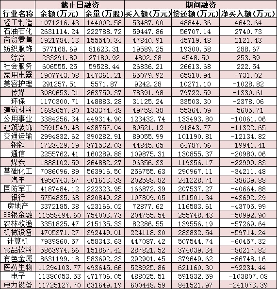 表:10月28日申萬(wàn)一級(jí)行業(yè)兩融交易情況: