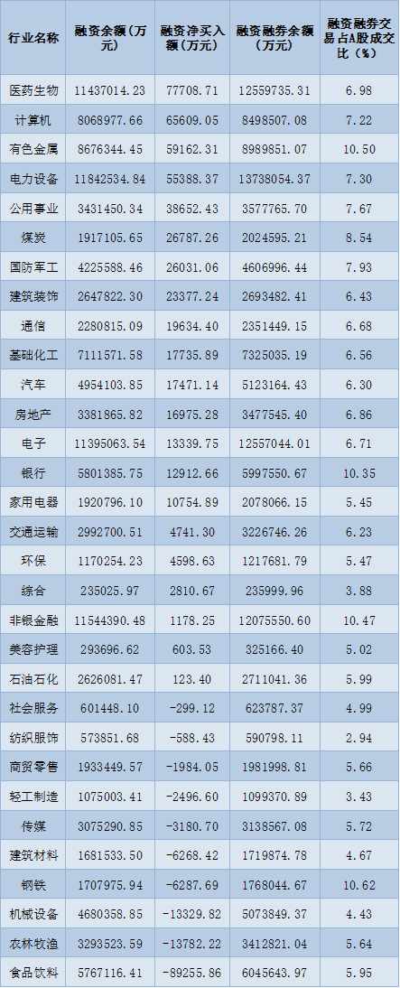 表:11月1日申萬一級(jí)行業(yè)兩融交易情況:
