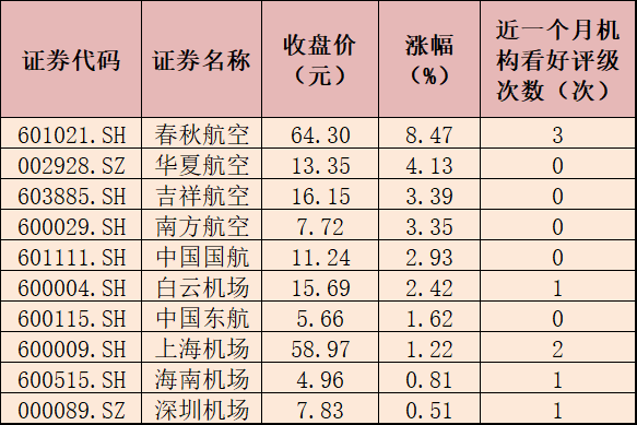 表:12月12日上漲的機(jī)場(chǎng)航運(yùn)股一覽