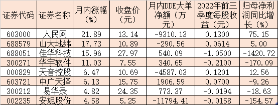 表:月內(nèi)累計漲幅超4%的數(shù)據(jù)確權(quán)概念股