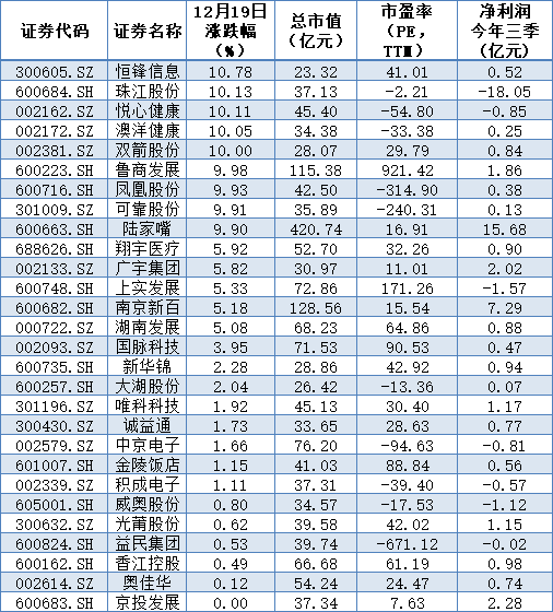 表:12月19日養(yǎng)老板塊上漲概念股一覽