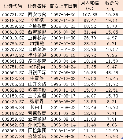 近期,申萬一級行業(yè)的社會服務行業(yè)指數(shù)持續(xù)走強。12月1日以來截至26日,其整體漲7.38%,跑贏上證指數(shù)(期間累計跌2.72%)。其中,22只個股月內累計漲幅超過10%,西安飲食月內股價實現(xiàn)翻番,期間累計漲幅達107.89%,全聚德、全通教育等2只概念股期間累計漲幅也均超50%。