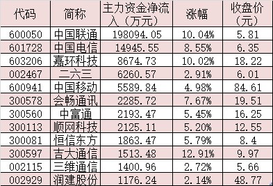 表:3月1日受到千萬元以上主力資金追捧的通信服務(wù)股