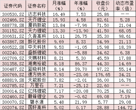 表:月內(nèi)累計漲幅超5%的鋰礦概念股