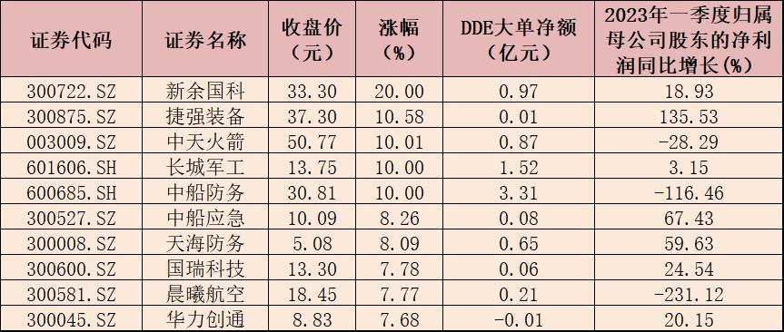 表:5月17日國防軍工行業(yè)漲幅居前十個股一覽
