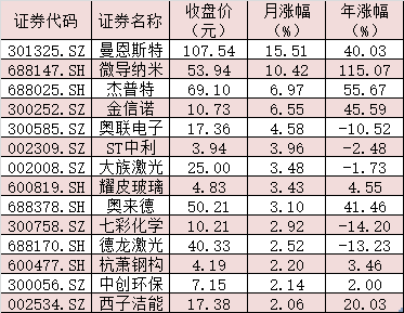 表:月內(nèi)累計漲幅超2%的鈣鈦礦電池概念股