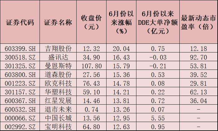 表:6月份以來(lái)漲幅居前十的鋰電池概念股一覽