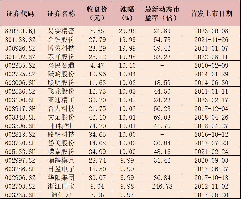 表:6月12日漲停的20只汽車零部件概念股一覽