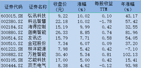 表:今日虛擬電廠板塊漲幅前十個股一覽