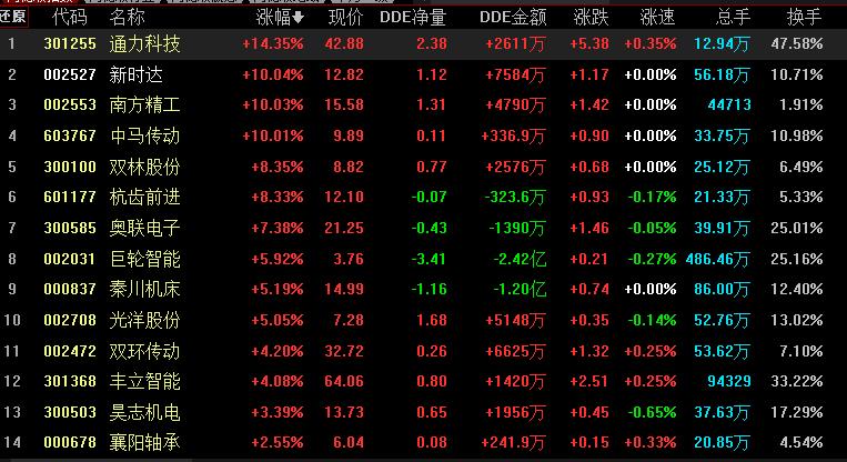 具體看,截至6月21日上午收盤,減速器板塊再度活躍,漲幅居前達1.70%,資金凈流入達74.37億元。其中,通力科技、新時達、南方精工、中馬傳動等概念股漲幅均超10%。