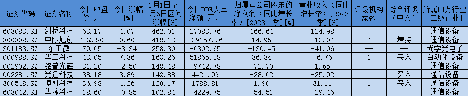 受益于技術(shù)加速迭代及政策支持,A股同花順F5G概念板塊近期表現(xiàn)十分突出。7月6日,F(xiàn)5G概念板塊表現(xiàn)強(qiáng)勢,板塊整體漲1.37%,跑贏上證指數(shù)(下跌0.54%)。其中,華工科技、星網(wǎng)銳捷、博創(chuàng)科技、劍橋科技等個股漲幅超4%。今年以來,截至7月6日,F(xiàn)5G概念板塊期間累計(jì)上漲87.42%,包括劍橋科技、中際旭創(chuàng)、東田微、華工科技、銘普光磁、光迅科技、博創(chuàng)科技、華脈科技等個股漲幅均超100%。
