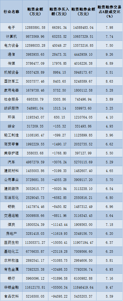 表:7月13日申萬一級行業(yè)兩融交易情況