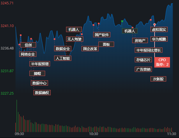 7月14日早盤,A股三大指數(shù)震蕩分化,呈滬強(qiáng)深弱格局。截至上午11:30,上證指數(shù)漲0.29%,報3245.71點(diǎn),深證成指和創(chuàng)業(yè)板指漲跌幅分別為0.02%和-0.51%;滬深兩市成交額合計5863.95億元。A股市場有2487只個股上漲,2428只下跌,漲跌停方面,有40只個股漲停,跌停股7只。