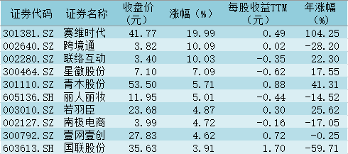 表:今日互聯(lián)網(wǎng)電商板塊漲幅前十個(gè)股一覽