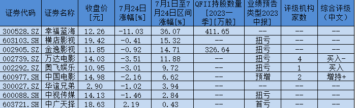 表:7月1日至7月24日,影視院線板塊期間實(shí)現(xiàn)上漲個股一覽