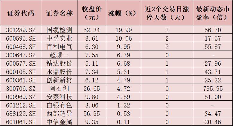 表:8月2日實現(xiàn)上漲的超導(dǎo)概念股一覽
