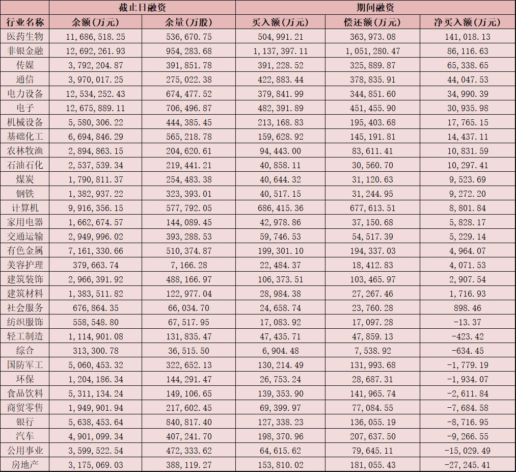 表:8月7日申萬一級(jí)行業(yè)兩融交易情況