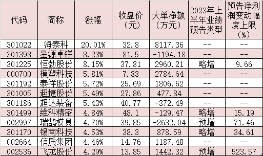 8月8日,汽車零部件板塊沖高回落,不過板塊內(nèi)多只概念股漲幅居前。其中,海泰科漲停,星源卓鎂、恒勃股份分別大漲8.23%、8.15%,模塑科技、泰祥股份、超捷股份、超達裝備等個股漲幅也均逾5%。