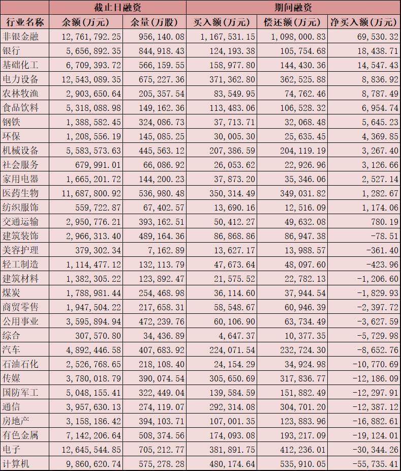 表:8月8日申萬一級行業(yè)兩融交易情況