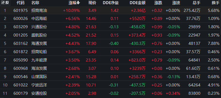具體看,截至8月10日上午收盤,航運板塊漲幅居首,達(dá)2.03%,主力資金凈流入額為3.83億元。其中,招商南油漲停。