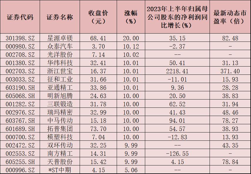 8月29日,汽車行業(yè)走強(qiáng),截至收盤,汽車行業(yè)指數(shù)漲4.08%,位列申萬一級(jí)行業(yè)指數(shù)漲幅榜首位,行業(yè)內(nèi)278只個(gè)股中有269只個(gè)股實(shí)現(xiàn)上漲,其中,包括星源卓鎂、眾泰汽車、光洋股份、華緯科技等在內(nèi)的17只個(gè)股集體漲停。