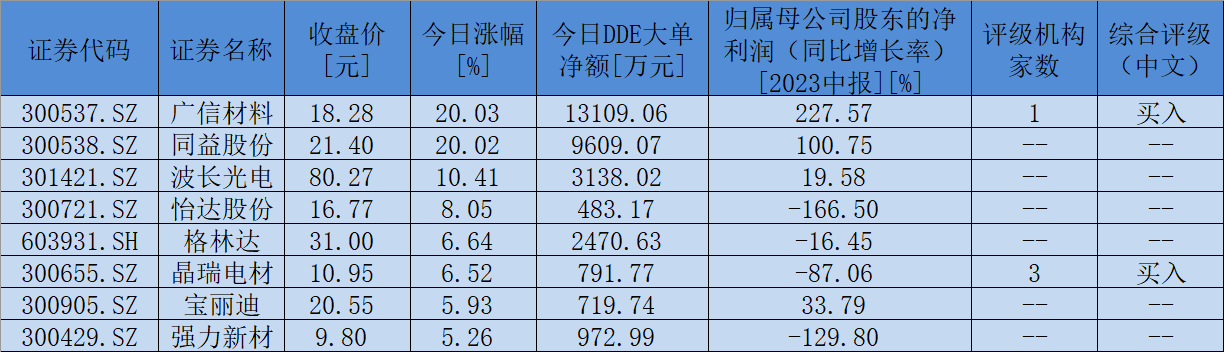 表:9月5日,同花順光刻膠概念板塊漲幅超5%個(gè)股一覽
