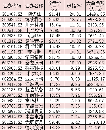 9月18日,華為汽車板塊集體走強(qiáng),截至收盤,其整體漲3.78%,跑贏上證指數(shù)(漲0.26%)。其中,11只概念股集體漲停,德邁仕20CM漲停,豐華股份、京泉華、銘科精技、科華控股、賽力斯、華陽集團(tuán)、圣龍股份、祥鑫科技、科力爾、亞太股份等10只概念股漲停。