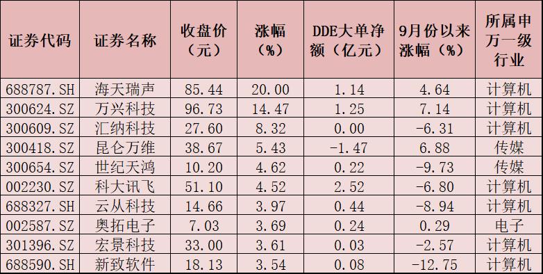 表:9月26日漲幅居前十的ChatGPT概念股一覽