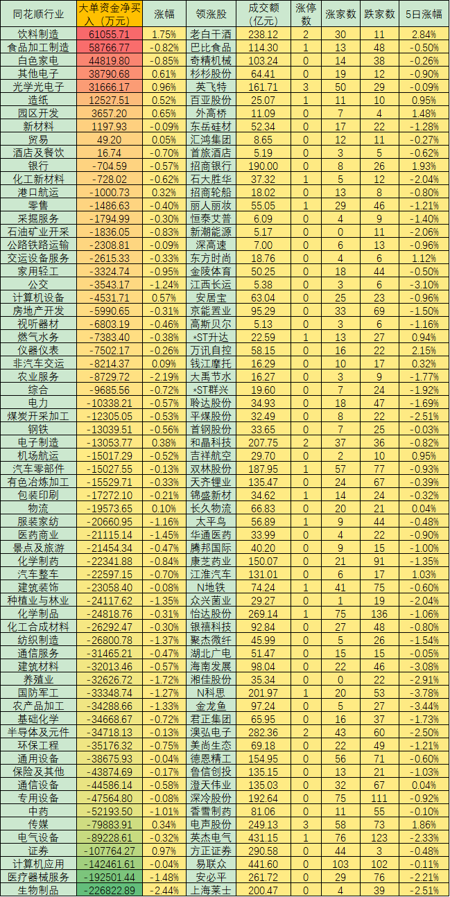 表:10月22日各同花順行業(yè)市場(chǎng)表現(xiàn)一覽