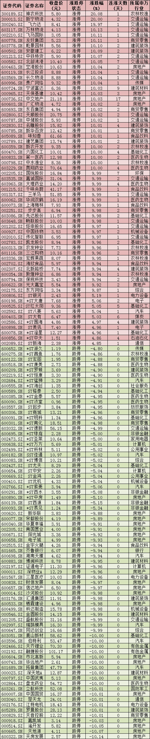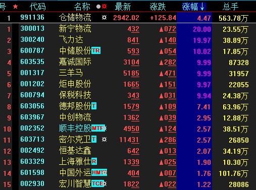 熱點(diǎn)二:倉(cāng)儲(chǔ)物流漲逾4%7只概念股集體漲停