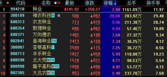 熱點(diǎn)一:農(nóng)業(yè)股逆市崛起種業(yè)板塊漲近8%