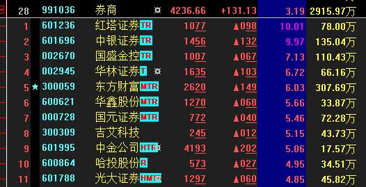 周二,被稱為“牛市旗手”的券商板塊拉升走高,截至收盤,板塊漲幅達(dá)3.19%,其中,紅塔證券、中銀證券等2只個股聯(lián)袂漲停。
