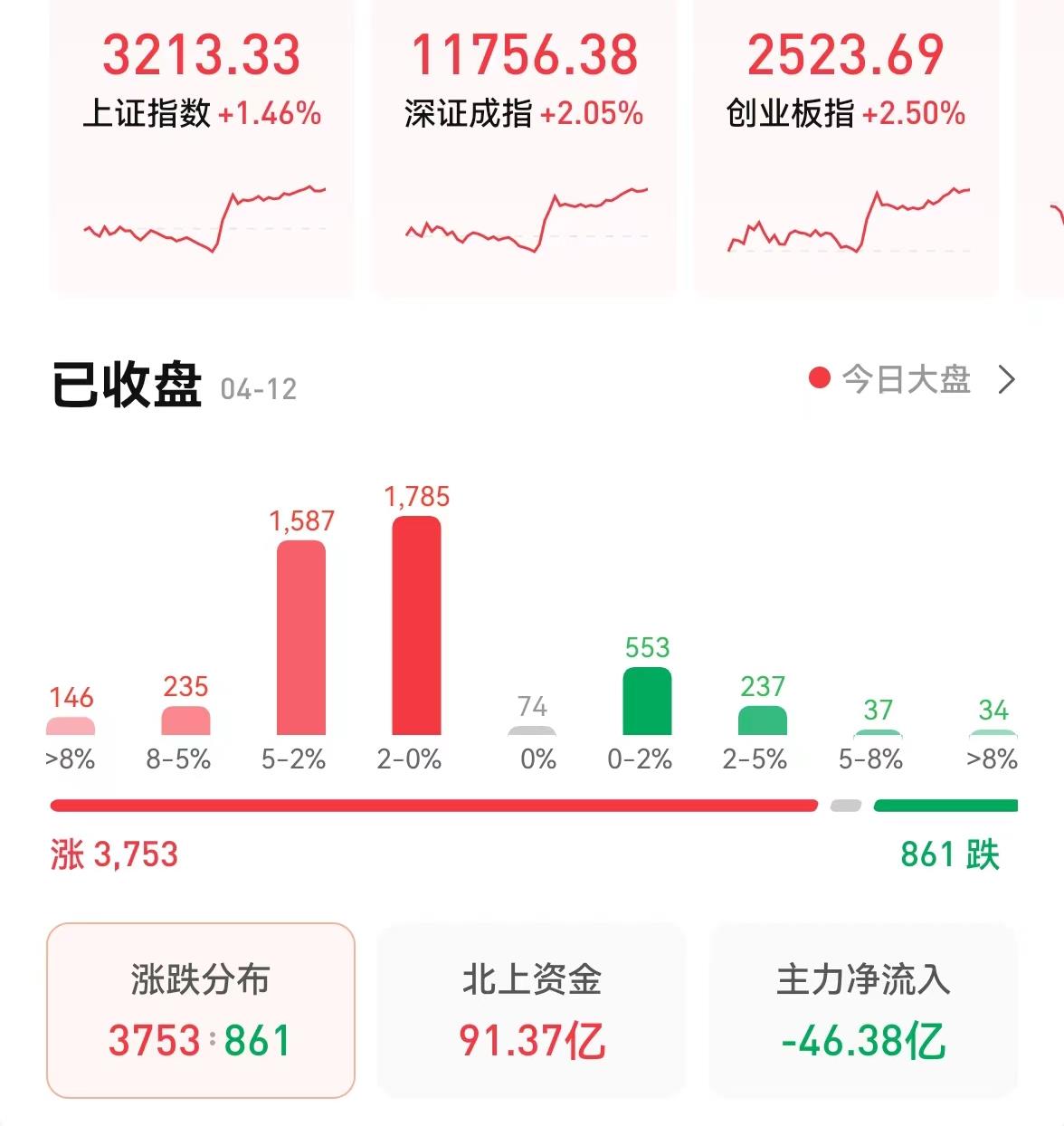 反抽普漲!周二(4月12日),A股三大指數(shù)全線飄紅,滬指重返3200點(diǎn),創(chuàng)業(yè)板指也成功站上2500點(diǎn)。熱點(diǎn)方面,住宿餐飲、旅游酒店、白酒和券商等板塊紛紛走強(qiáng),逾百股漲停。與此同時,北上資金大幅涌入超90億元,A股的反彈行情能否就此開啟呢?
