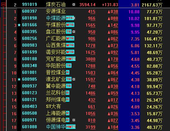 周三,煤炭石油板塊走高,截至收盤,板塊漲幅達3.81%,盤江股份、安源煤業(yè)、中煤能源和平煤股份等4股集體漲停。