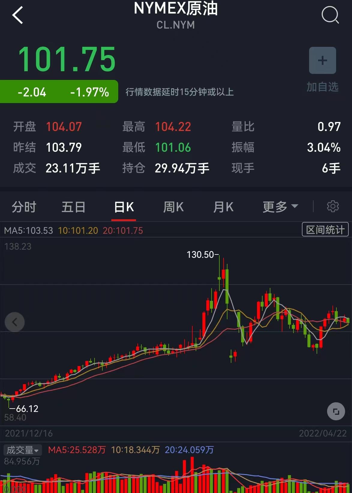 周五,國際油價(jià)全線下跌,美油6月合約跌1.97%,報(bào)101.75美元/桶。布油7月合約跌2.07%,報(bào)105.72美元/桶。本周,美油6月合約跌4.86%,布油7月合約跌5.35%。