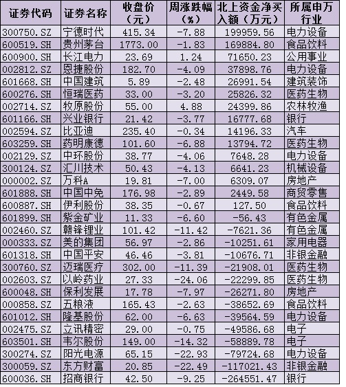 資金方面,北向資金本周累計(jì)凈買入金額達(dá)4.45億元。從前十大成交活躍股來看,本周,寧德時(shí)代、貴州茅臺(tái)等2只個(gè)股,北向資金凈買入金額均超10億元。另外,東方財(cái)富、招商銀行等個(gè)股遭北向資金凈賣出金額均超10億元。