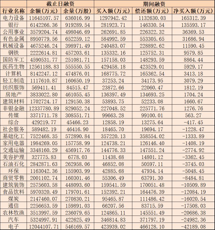 表:7月13日申萬(wàn)一級(jí)行業(yè)兩融交易情況: