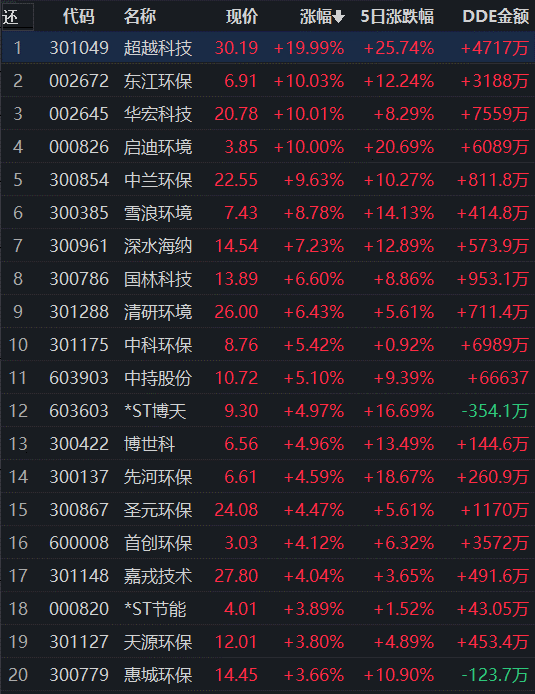 7月22日,環(huán)保行業(yè)漲幅居首,達(dá)1.75%。行業(yè)103只交易中的個股,有92只上漲,其中,5只個股漲停。